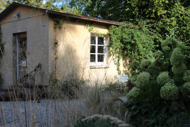 Das kleine Gärtnerhaus, das am äusseren Ende des Gartens liegt, ist das eigentliche «Schmucktrückli». Es kann gemietet werden für kleine Anlässe oder ein lauschiges Tête-à-tête mit einem feinen Dinner aus Nachbarins Küche, dem Bistro Cartonage.